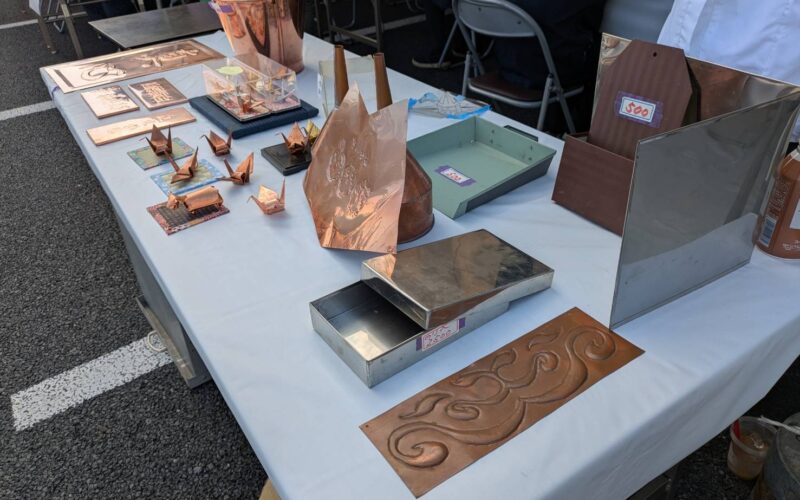 銅板で折り鶴や表札作りなどを沢山の方々に体験して頂く事ができました
